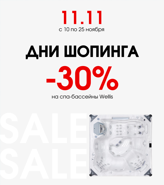 Не упустите уникальную возможность обновить свой дом и добавить в него атмосферу комфорта и релаксации! В EUROSPA стартуют Шопинг-дни, в рамках которых вы можете получить скидку 30% на гидромассажные спа-бассейны Wellis.